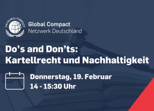 How can companies collaborate in sustainability partnerships without running antitrust risks? The webinar by the UN Global Compact Network Germany explores key issues that are also highly relevant for multi-stakeholder partnerships and builds on existing guidance.